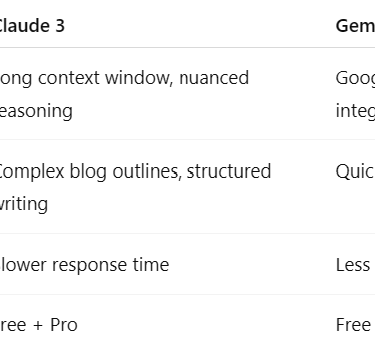 Gemini: Perfect for Google ecosystem bloggers.